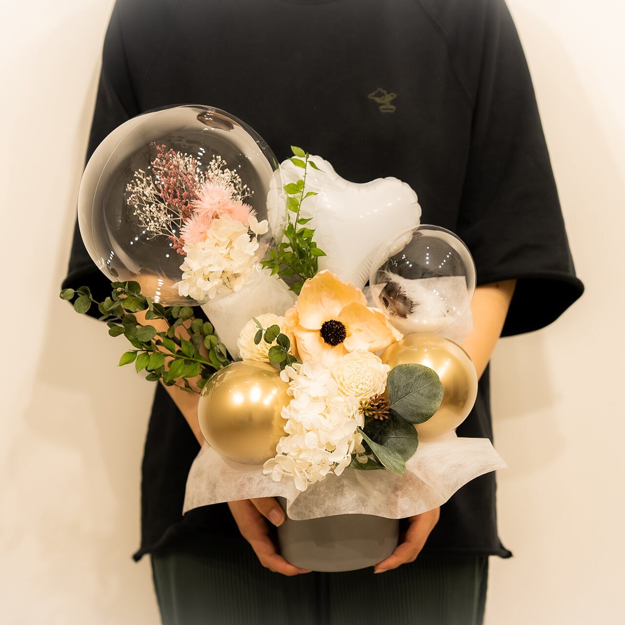 その時は中のお花を取り出し、ブーケとしてリメイクをお楽しみください。