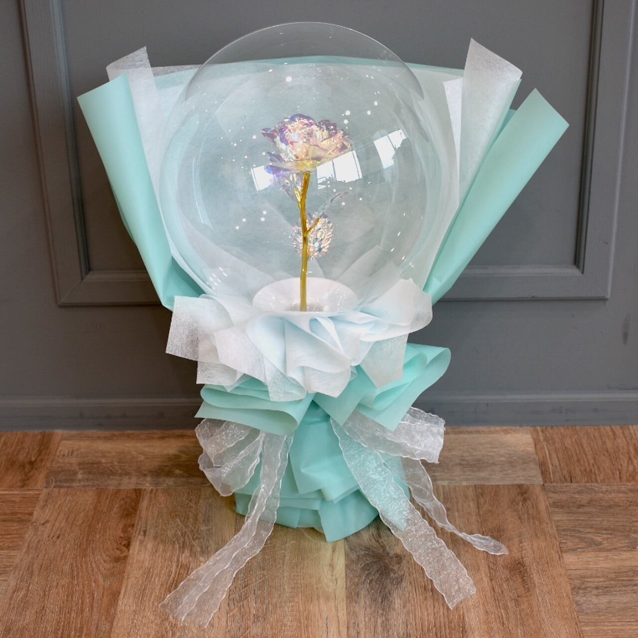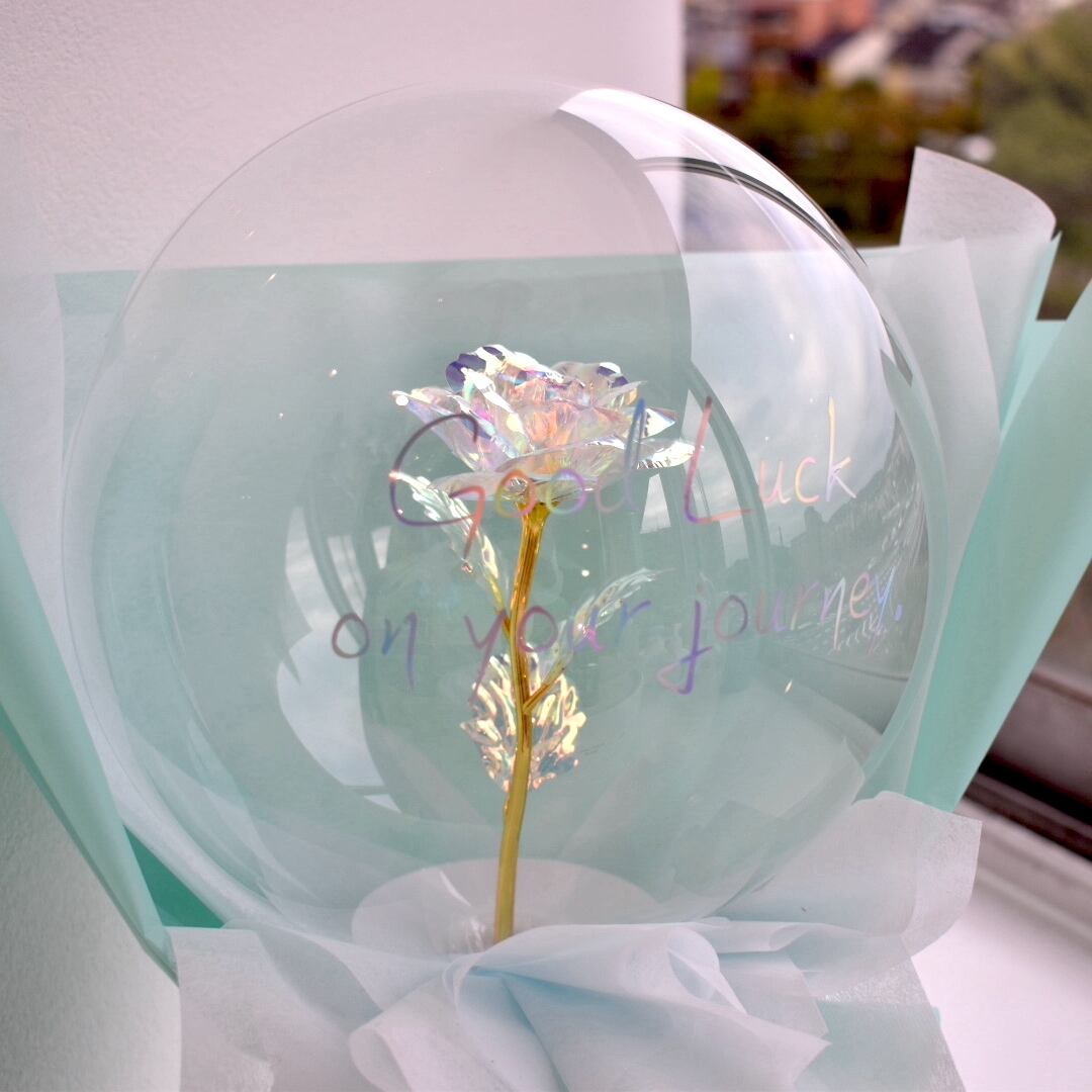 バルーンの中に一輪だけ閉じ込めたバルーンフラワーです。
