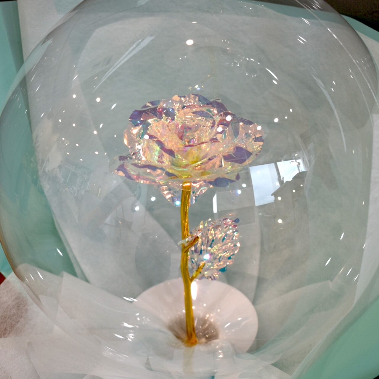 光の当たり加減でキラキラとオーロラのように光る不思議なアートフラワーです。