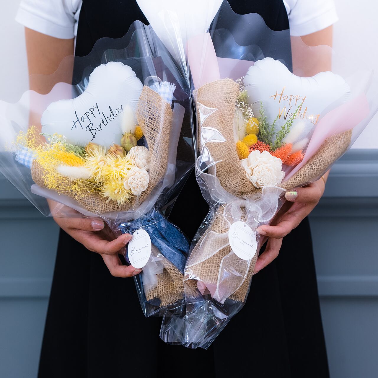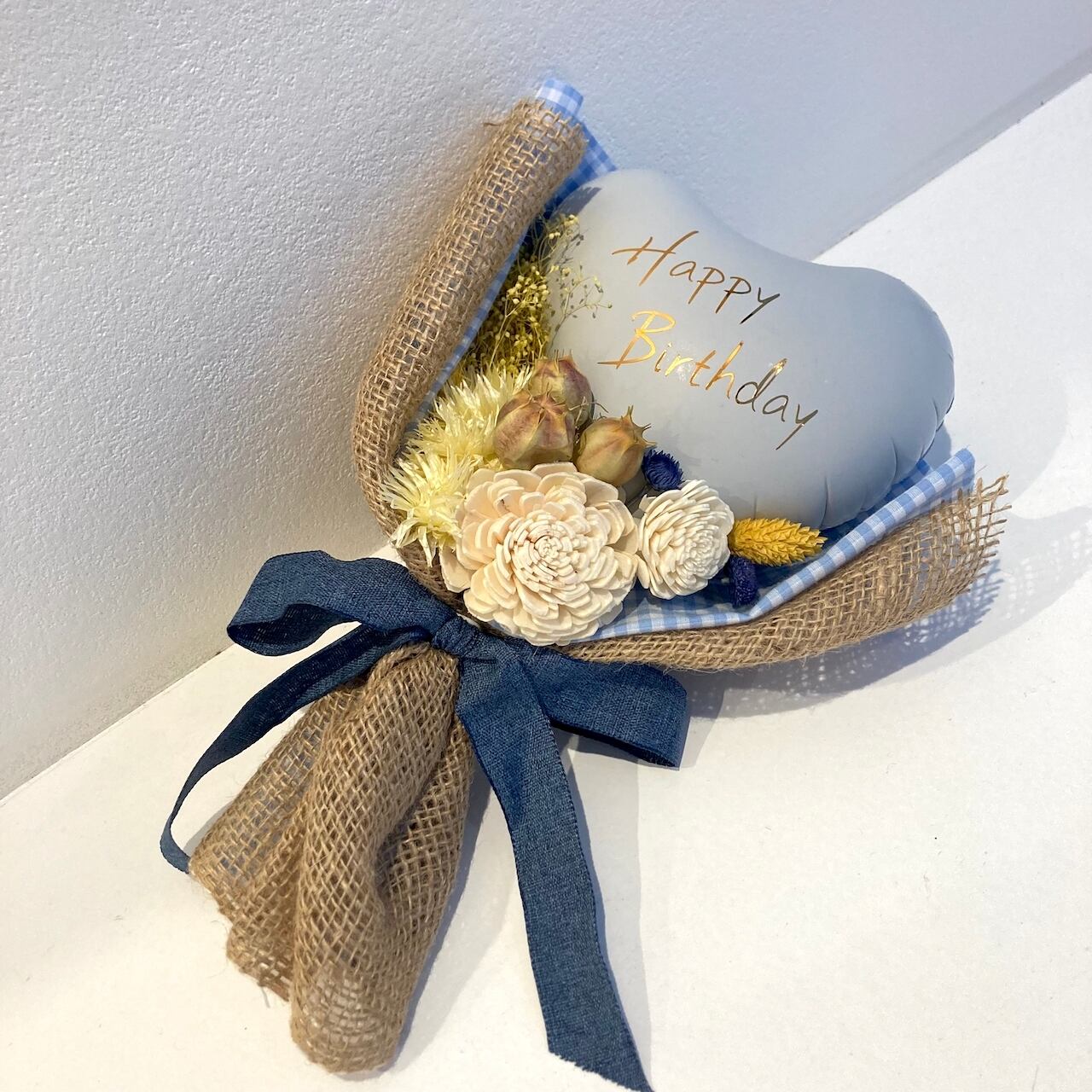 ◆バルーンとドライフラワーのミニブーケ イエロー系