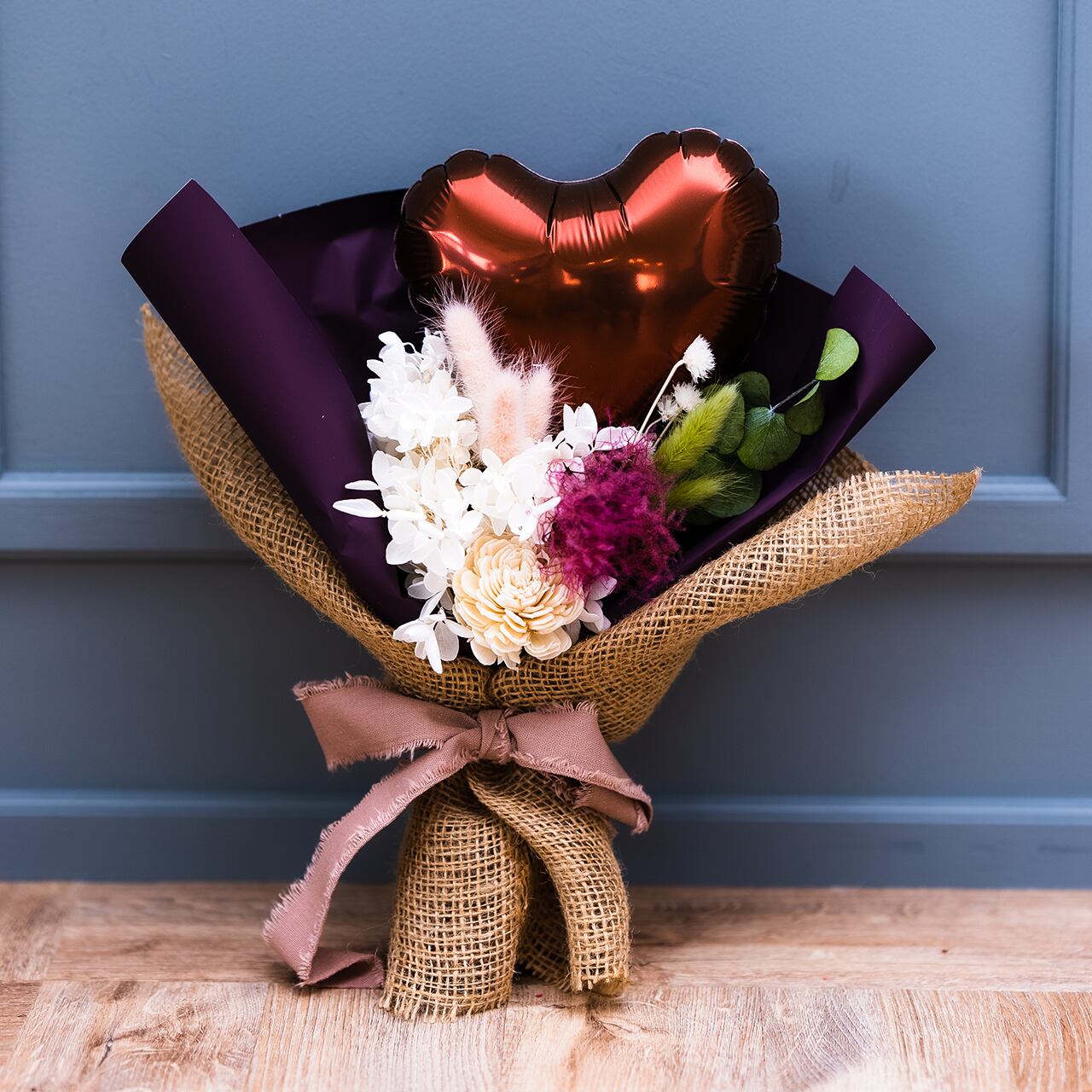 ◆バルーンとドライフラワーのミニブーケ メタリックブラウン