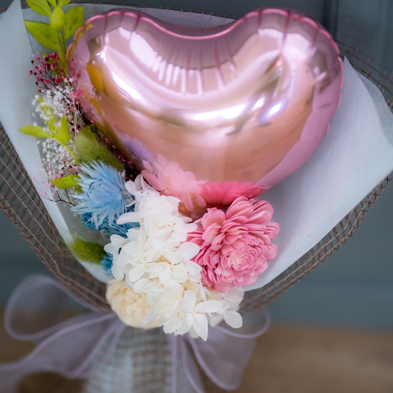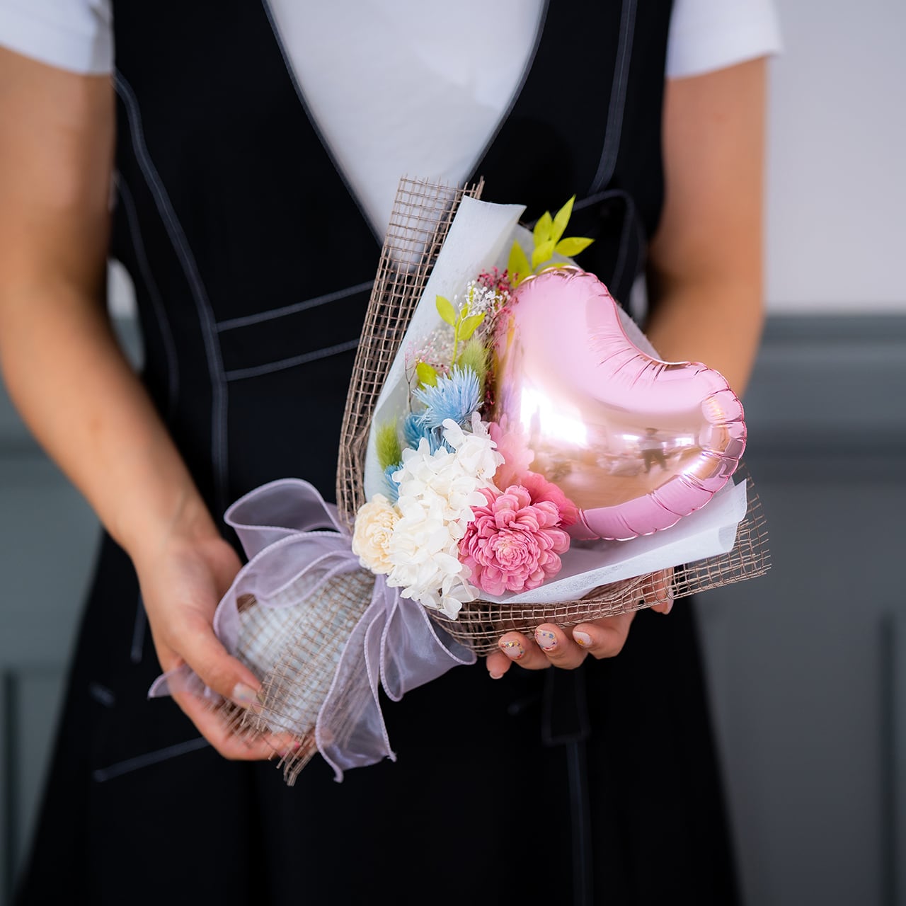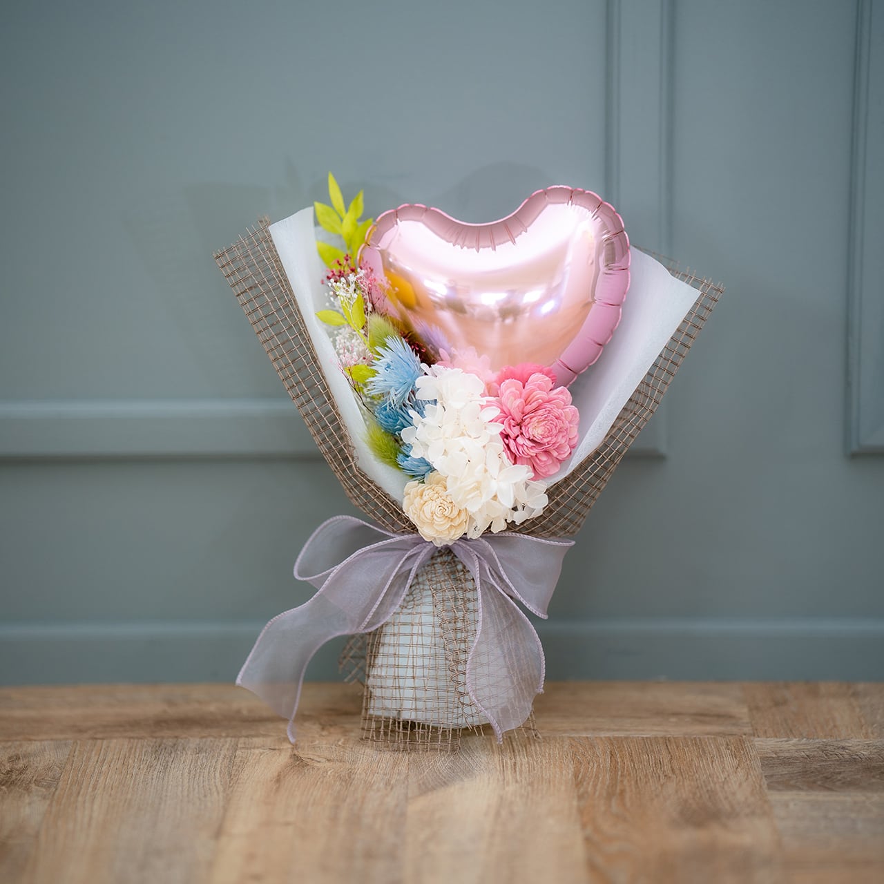 ◆バルーンとドライフラワーのミニブーケ ピンク