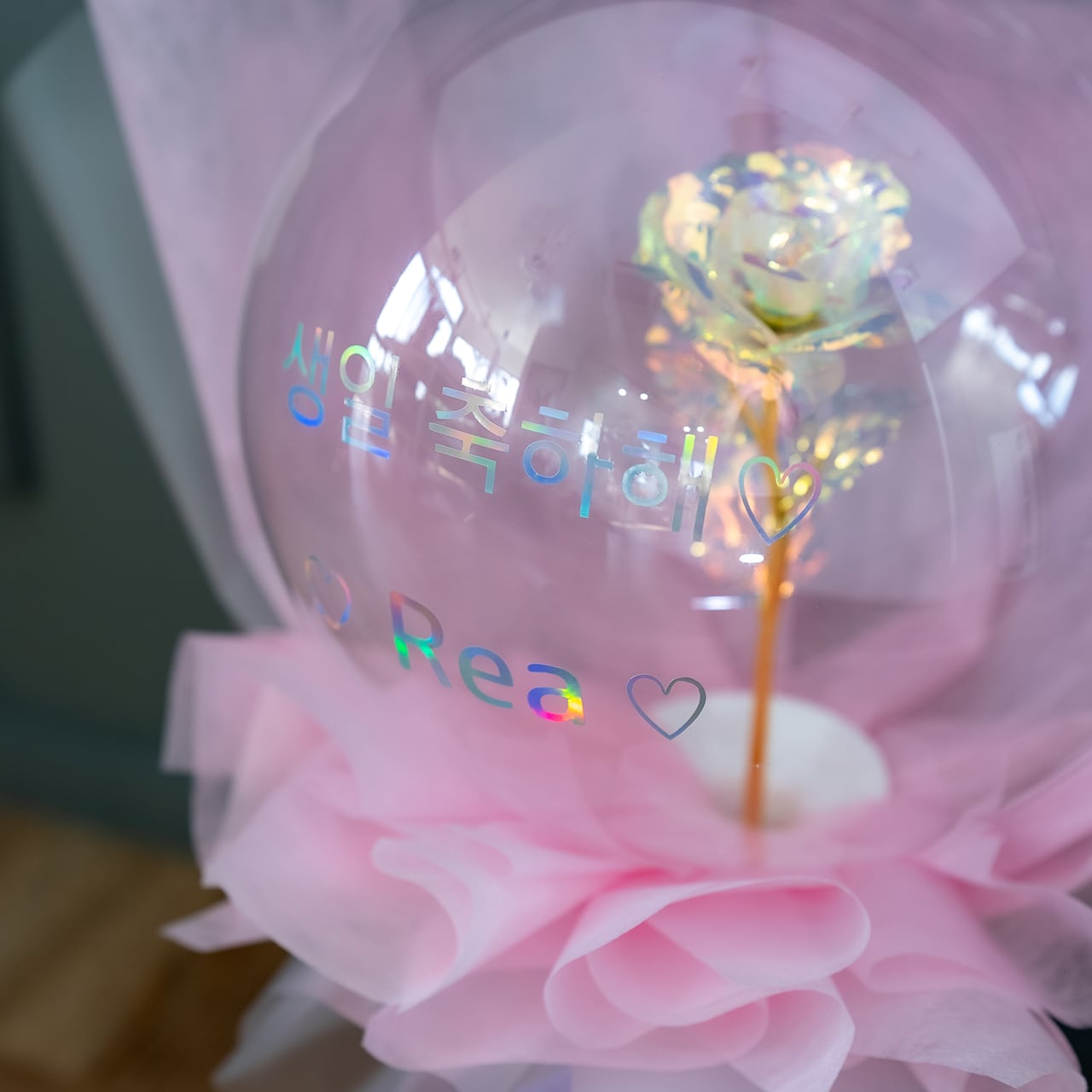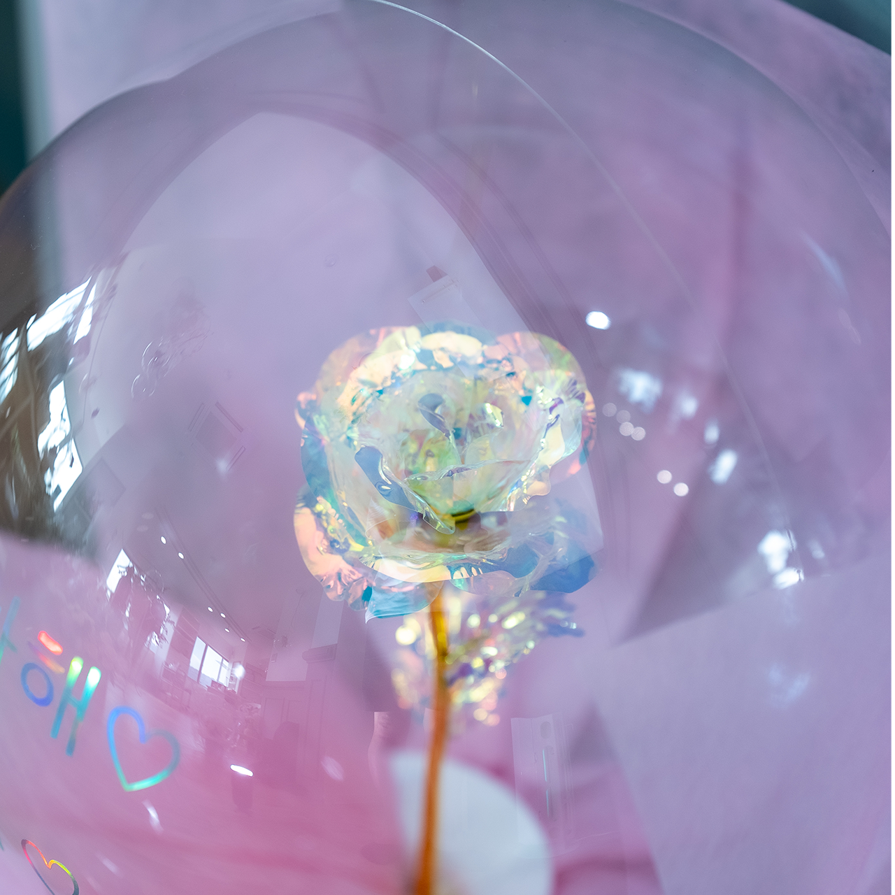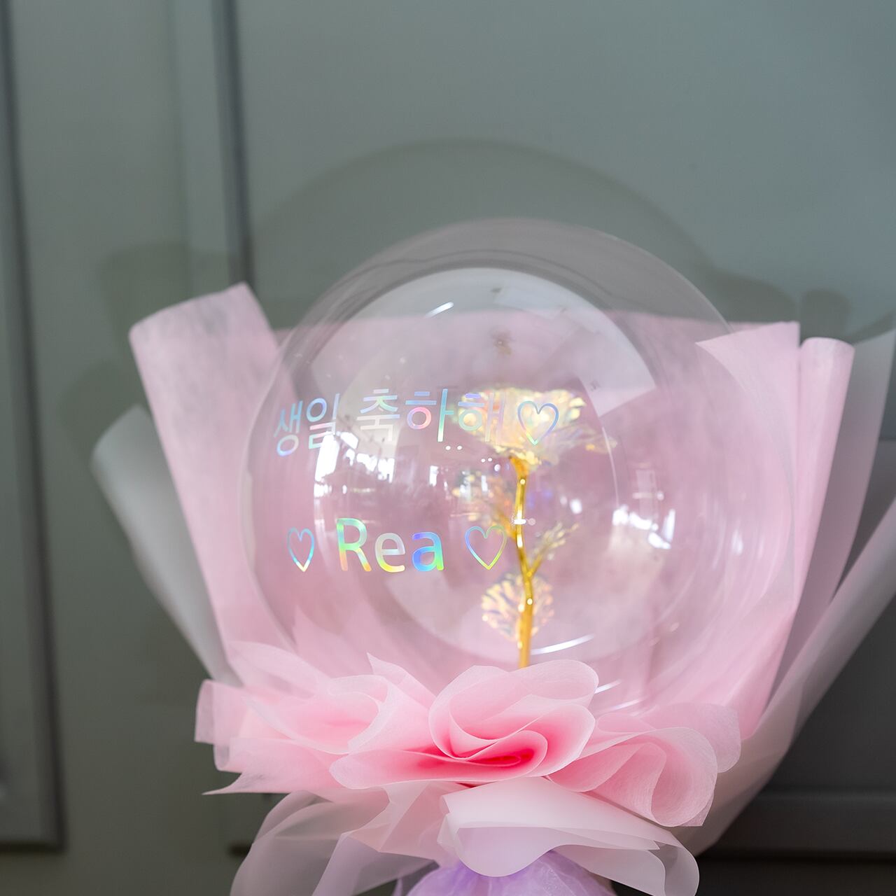 バルーンの中に一輪だけ閉じ込めたバルーンフラワーです。