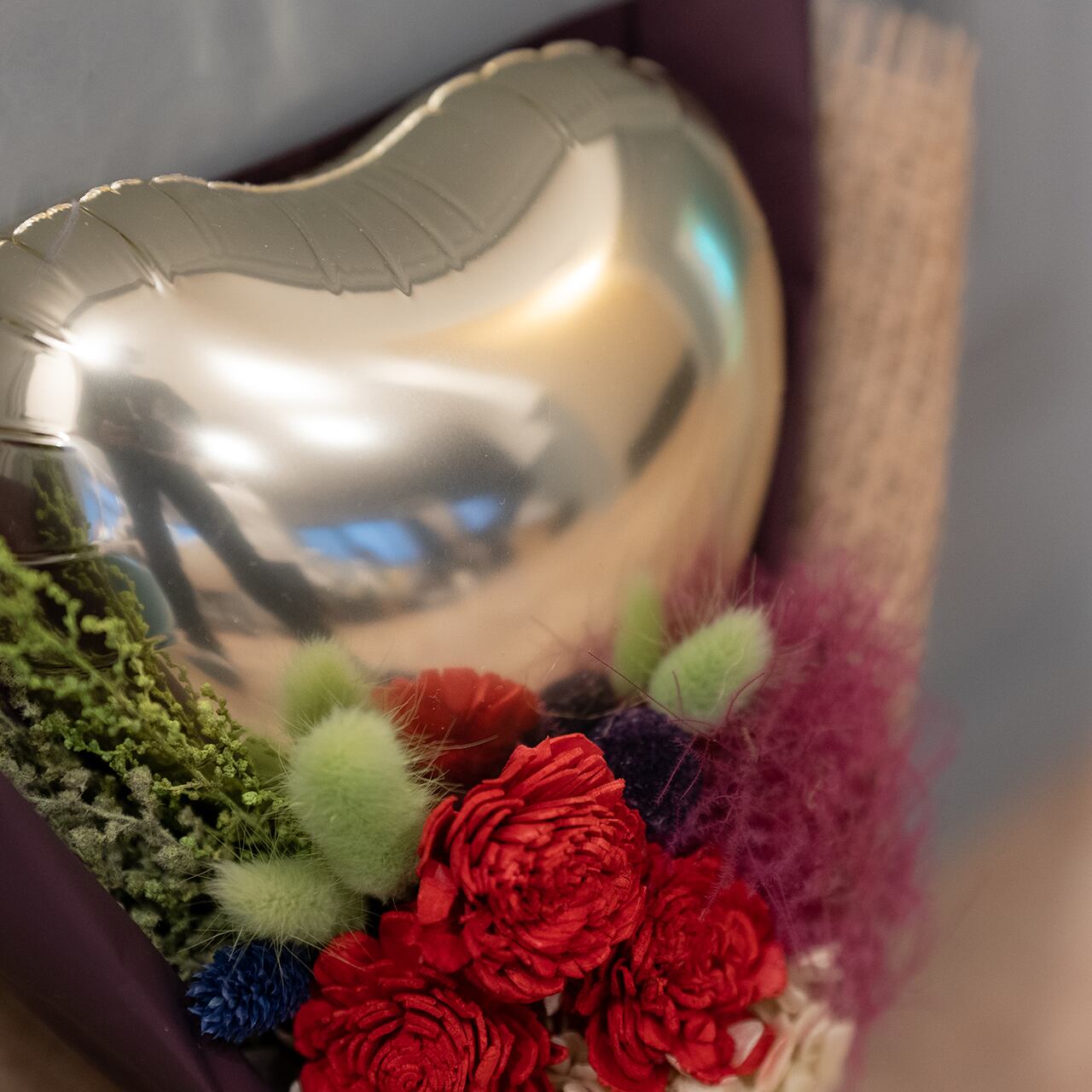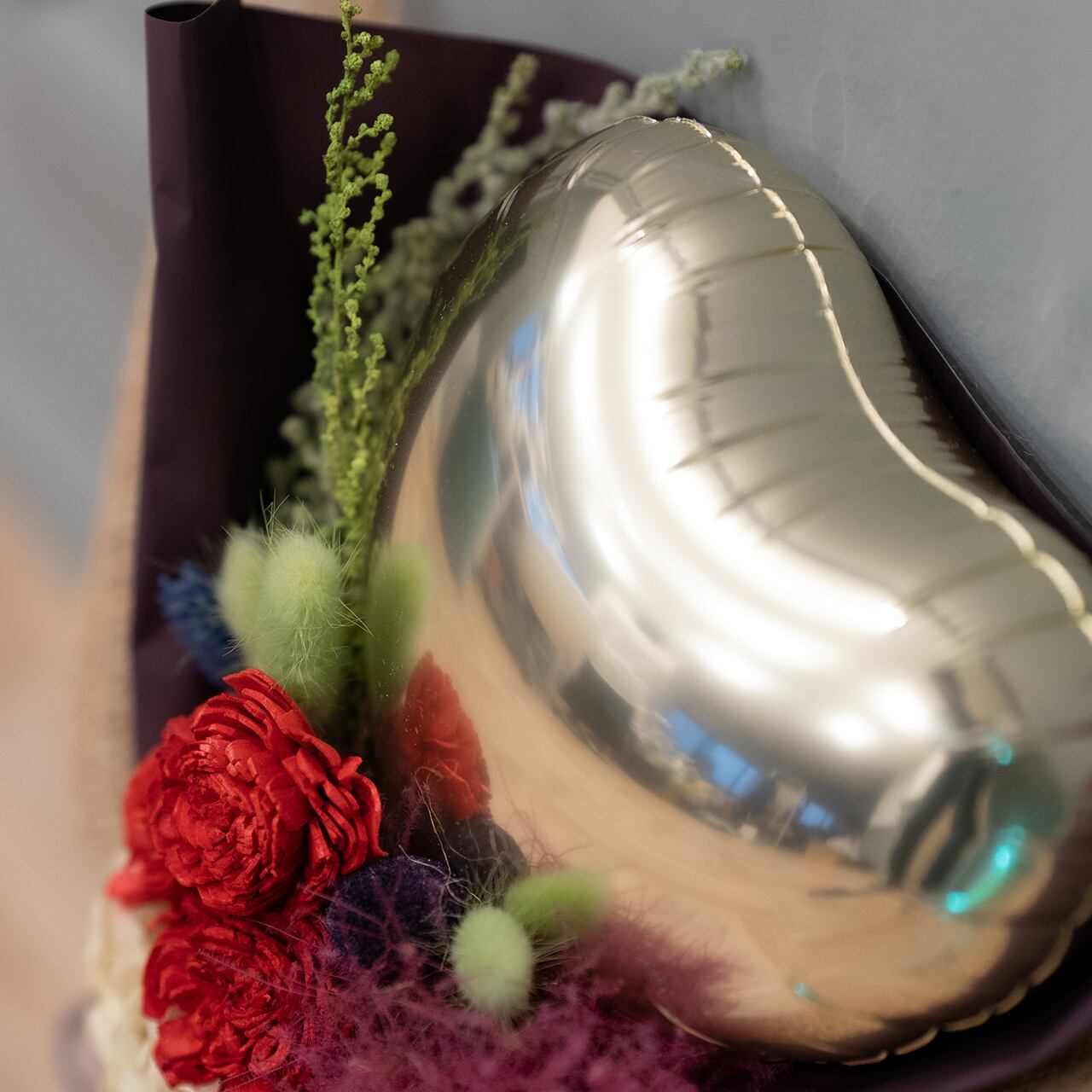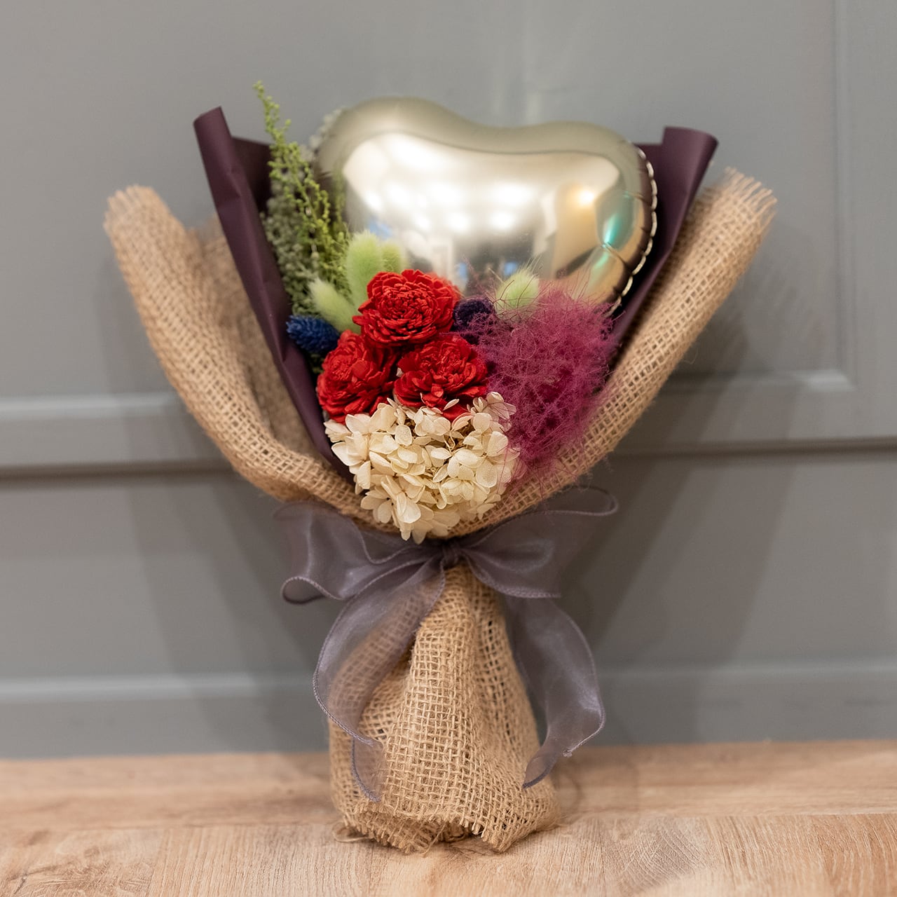 ◆バルーンとドライフラワーのミニブーケ メタリックゴールド