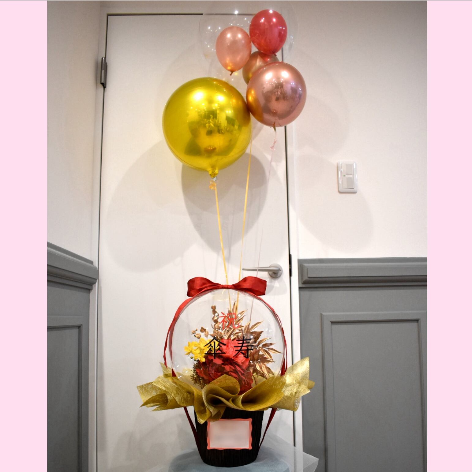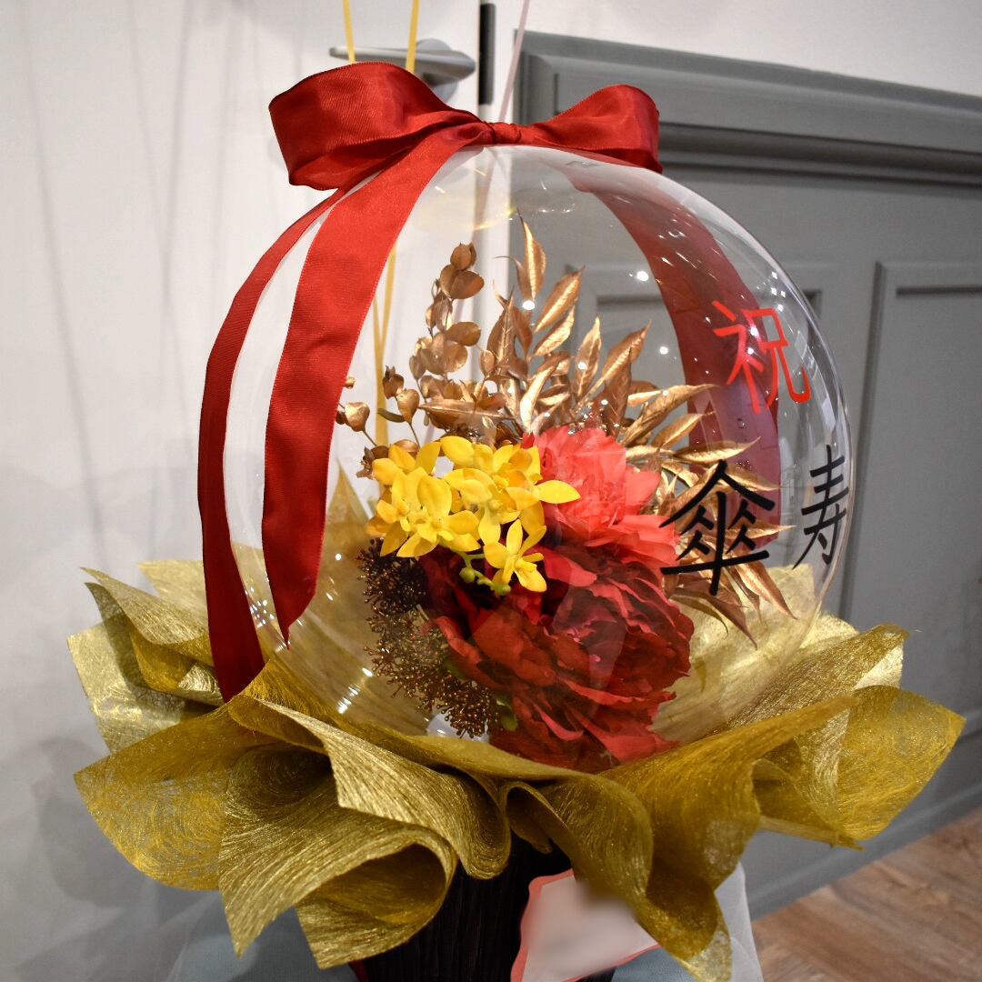 大きめのバルーンフラワーにフロートバルーンをコンビにしたアレンジです。