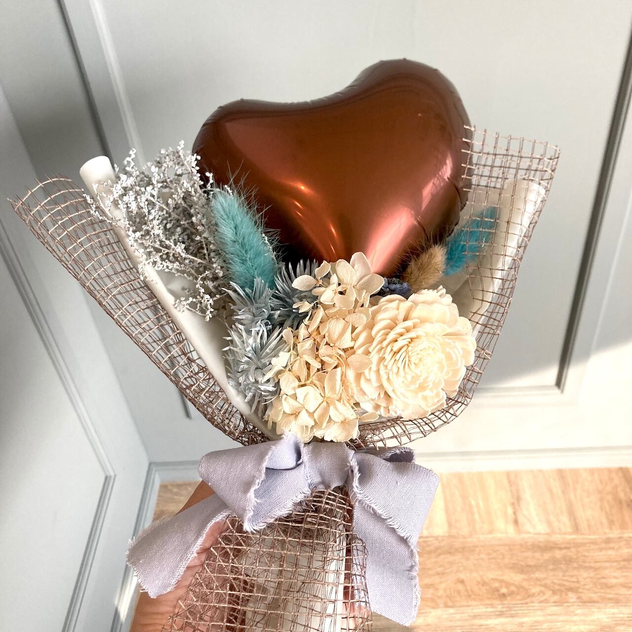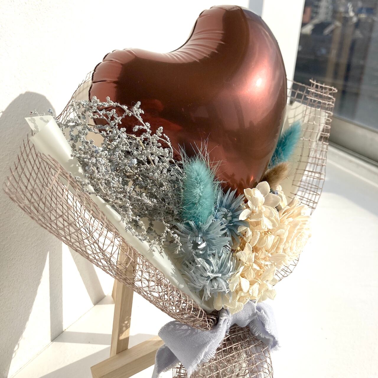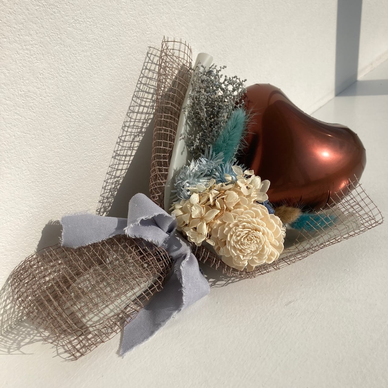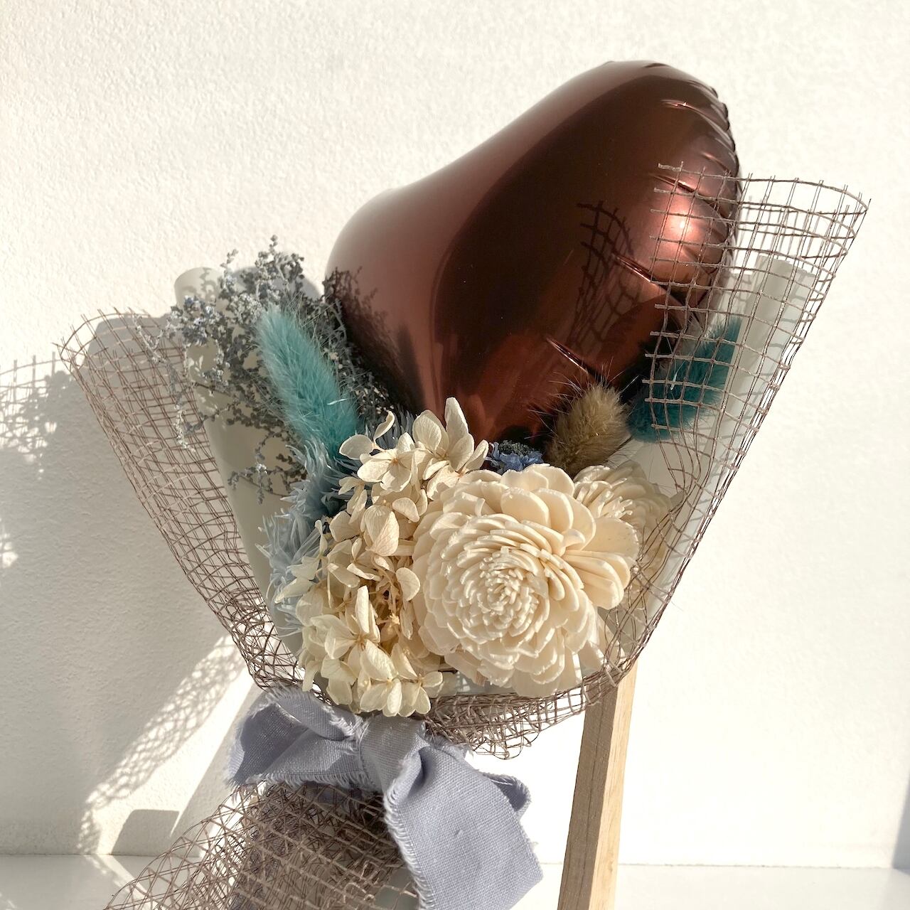 ◆バルーンとドライフラワーのミニブーケ メタリックゴールド