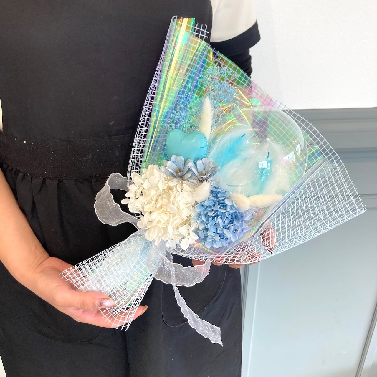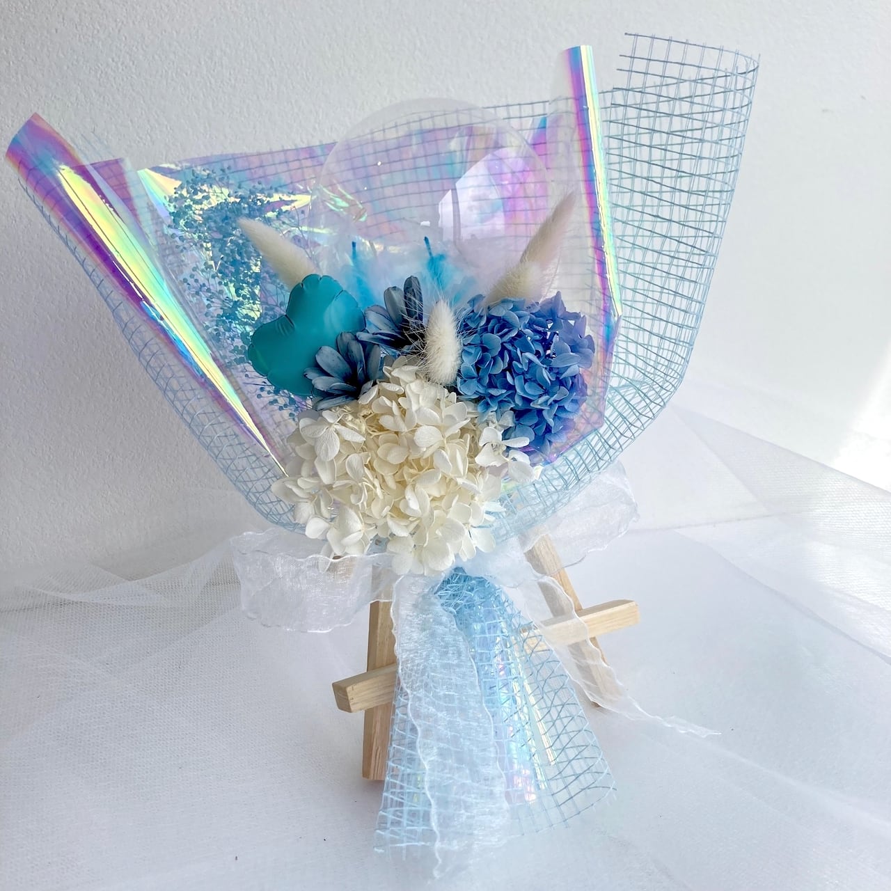 キラキラとフワフワのブーケはいかがでしょうか。